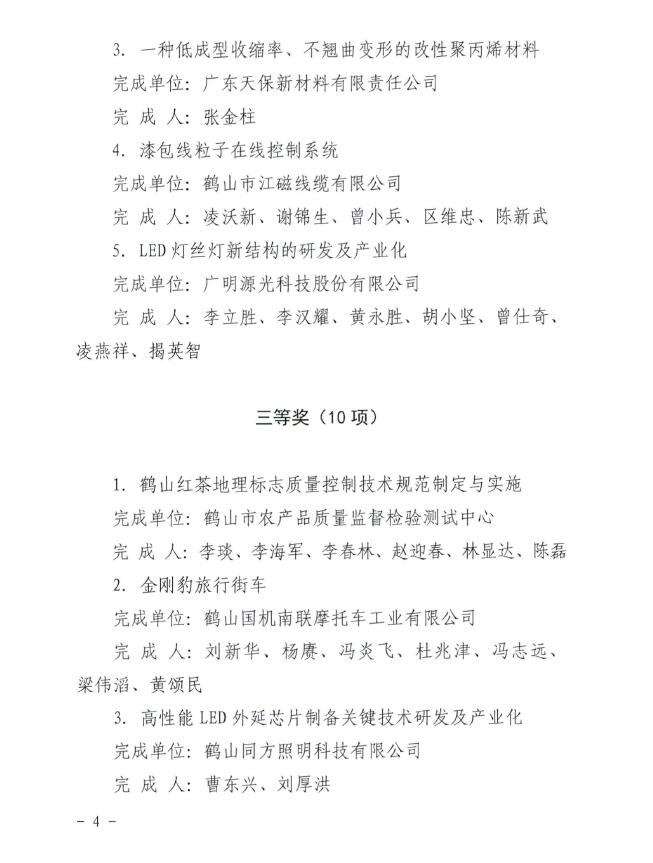 荣获“2016年鹤山市科学技术奖三等奖”