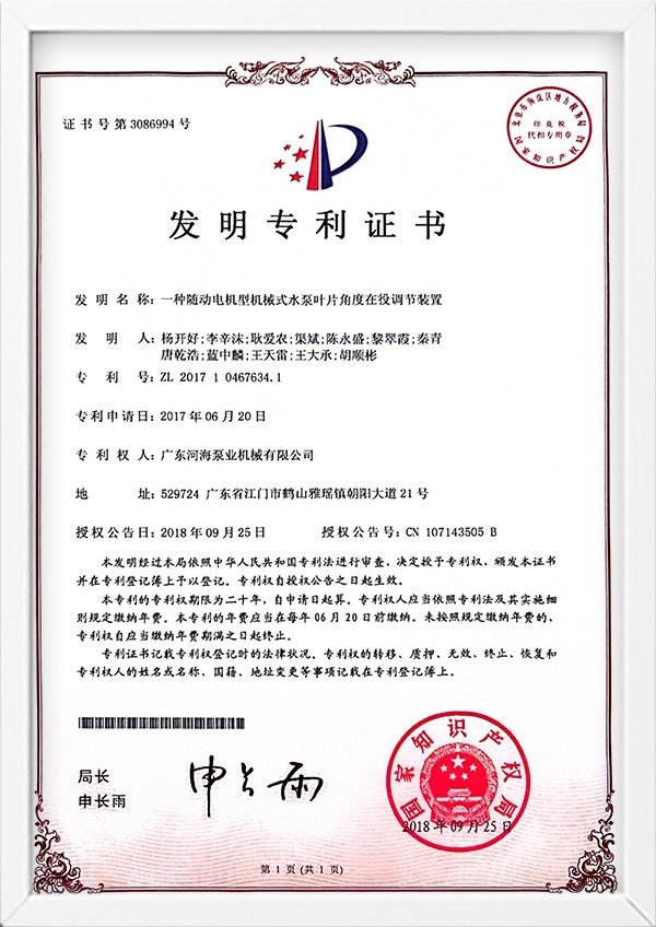 实用新型专利证书