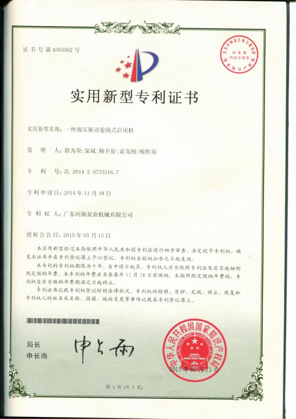 实用新型专利证书
